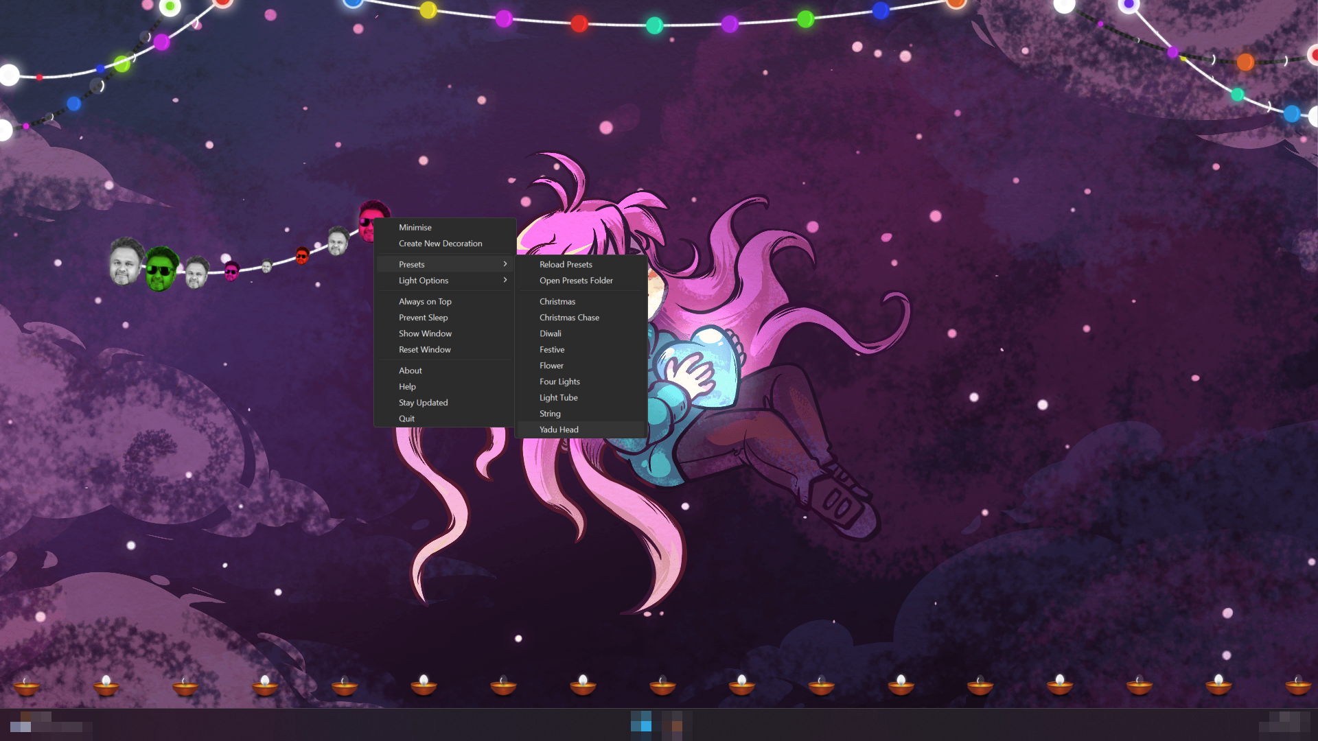 Ever thought about hanging up lights on your desktop? If you have, then you are in luck! Desktop Decorations - Lights brings to life a set of highly customisable string lights to decorate your desktop with.